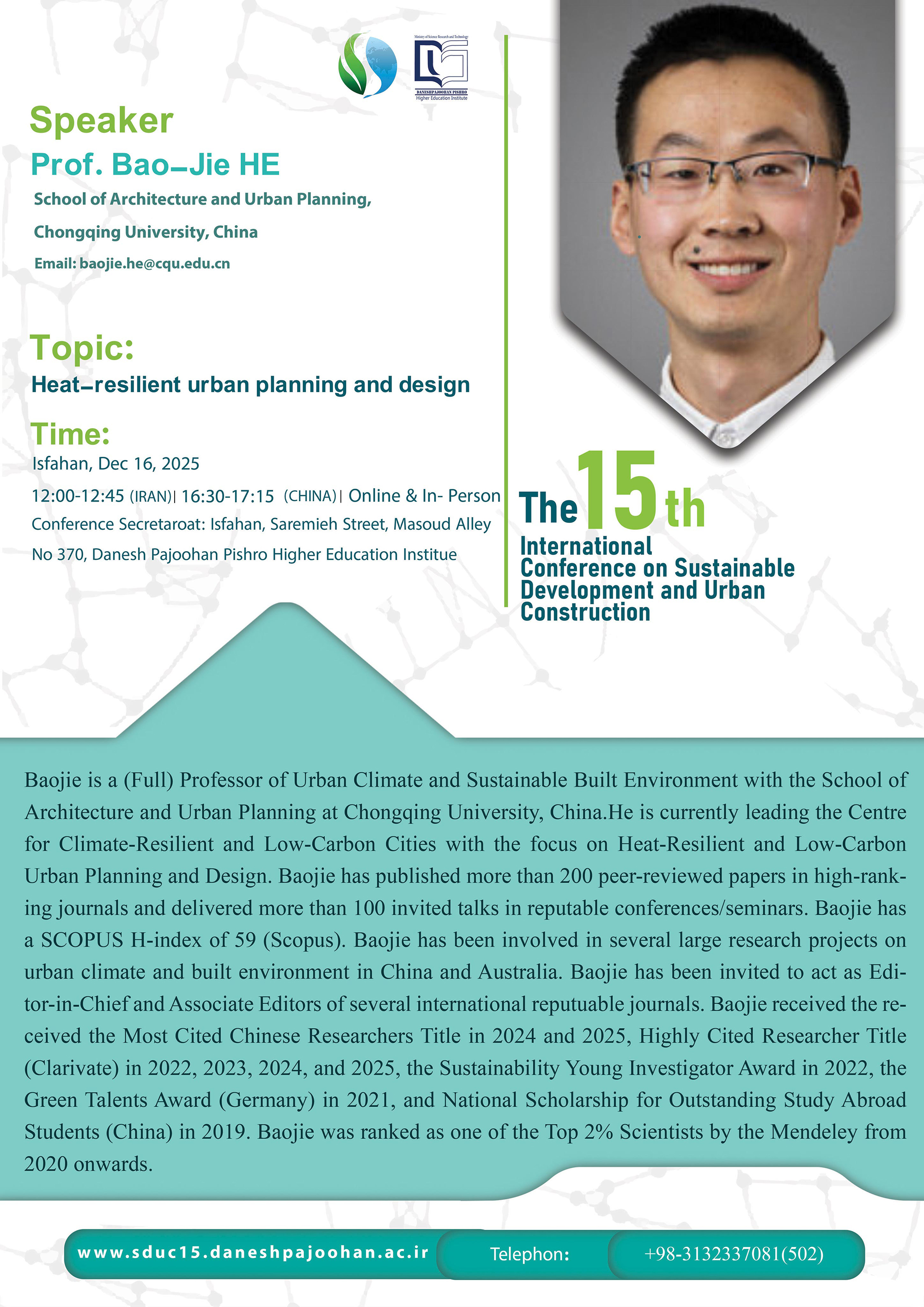 Amphitheater | 12:00-12:45 | Bao Jie He | Heat-Resilient Urban Planning and Design |