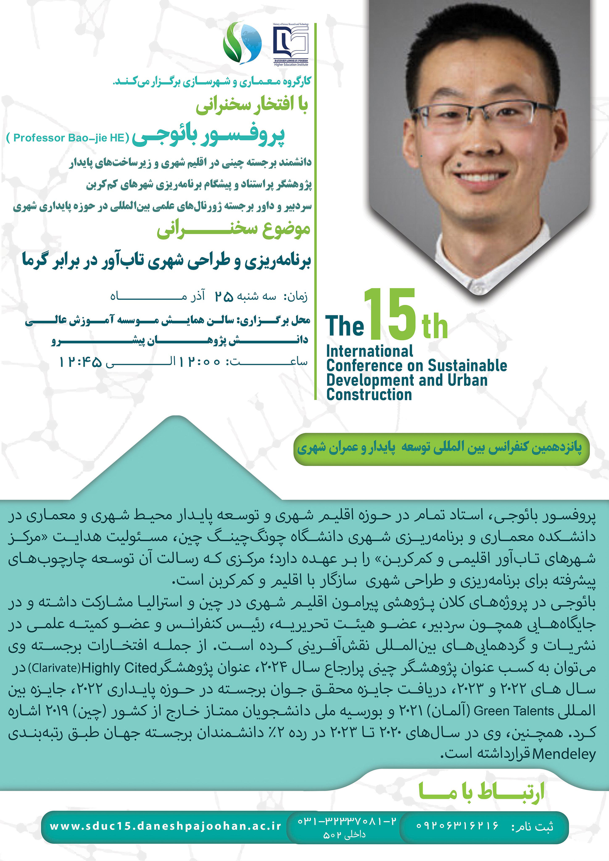 1404/09/25 | Heat-resilient urban planning and design | Bao Jie He | 12:00-12:45 | شهرسازی معماری محیط زیست HSE |