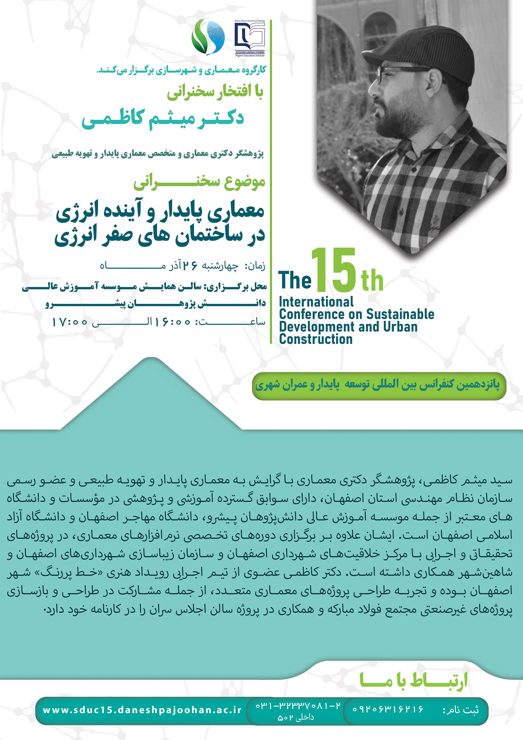 1404/09/26 | معماری پایدار و آینده انرژی در ساختمان های انرژی صفر | دکتر سید میثم کاظمی | 16:00-17:00 | معماری عمران مکانیک |